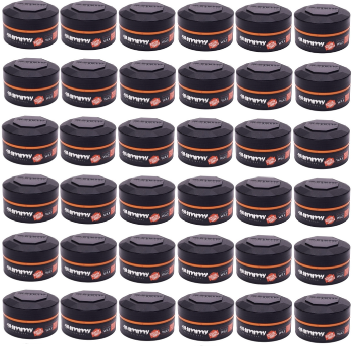Volle doos van Gummy Bright Finish hairwax 36 stuks. Prijs per potje 2.06 ex btw