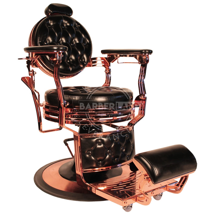 De ronde voet en vezelpompdeksel met mat metalen afwerking geeft de barber chair een luxe uitstraling.