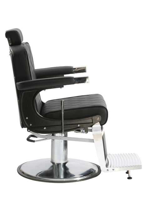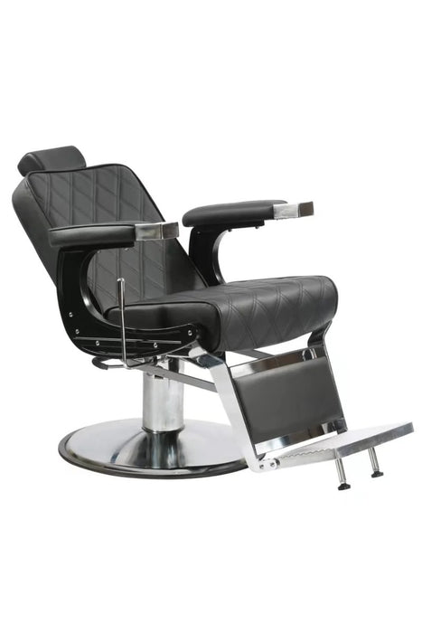 De ruitvormige stiknaden en chroom accenten geven de Asher barberstoel een luxe en moderne uitstraling, de perfecte eye-catcher voor de hedendaagse barbershop. Door zijn kantelbare rugleuning en voetensteun en de verstelbare hoofdsteun, genieten klanten van een hoog comfort ongeacht de behandeling.