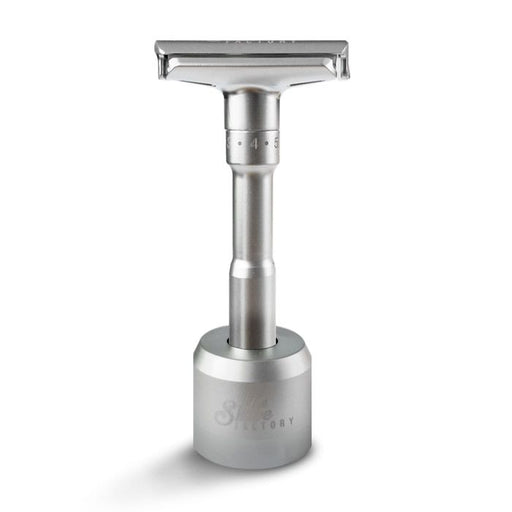 The Shave Factory Double Edge Razor Prachtig, goed gevormd RVS scheermes met bijpassende standaard. Het bladhoogte kan bij de Shave Factory razor i...