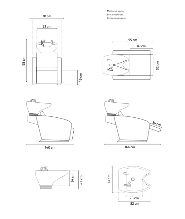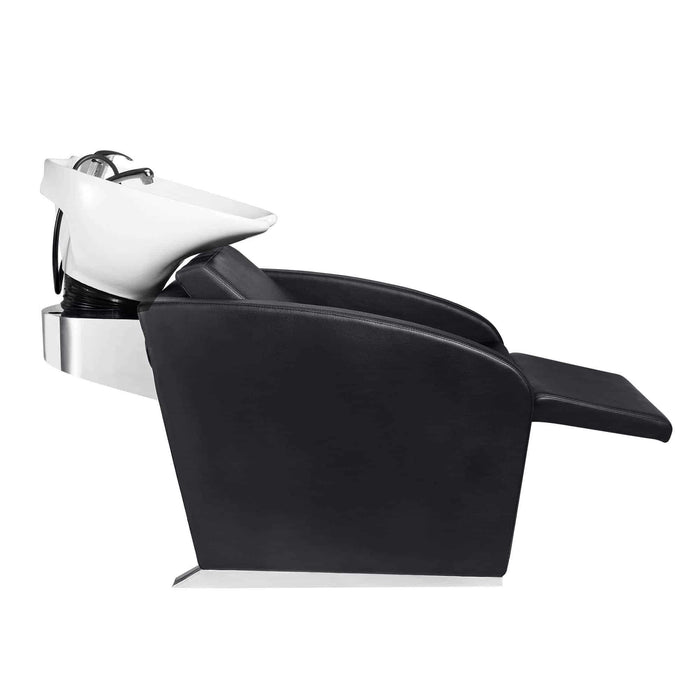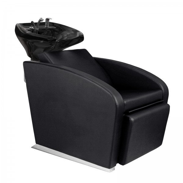 Deze professionele wasunit zit erg comfortabel en heeft een elektrisch uitklapbare voetensteun. Deze bediend de kapper aan de achterkant met een handige knop. Zitting gemaakt met houten binnenstructuur, bekleed met brandvertragend PVC-kunstleer en snel herstelschuim met hoge dichtheid. Wastafel en deksel van de wastafelsteun van roestvrij staal. Aqua stop kit: Mengkraan, anti-drup en flexibele douche.