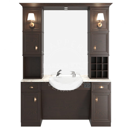 Elegant, stijlvol en compleet. Het aantrekkelijke ontwerp maakt het het meest authentieke kappersstation. Gemaakt van gelakt hout. Met meerdere lad...