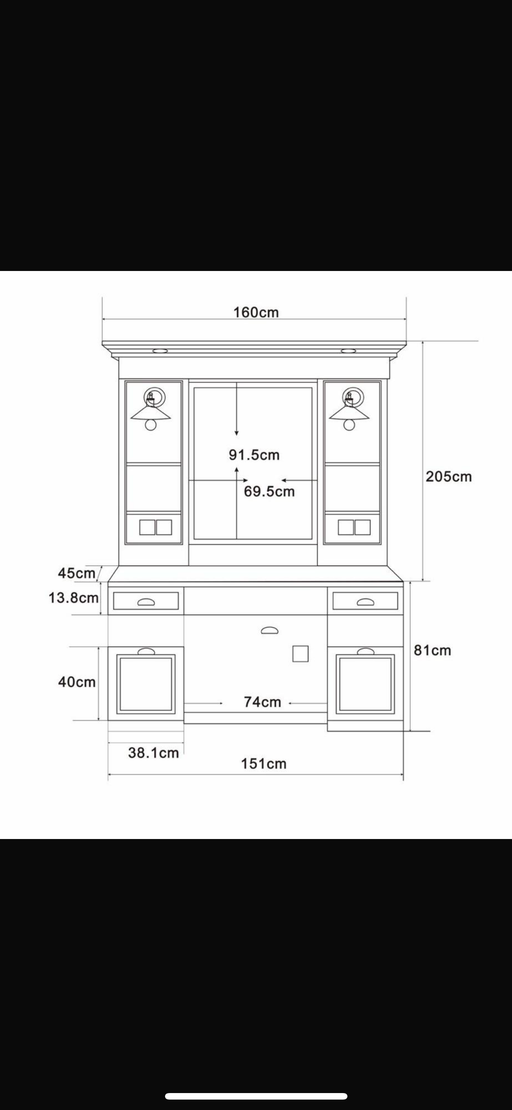 Alle gegevens bekijkenKaptafel 2 spiegels met wasbak 108