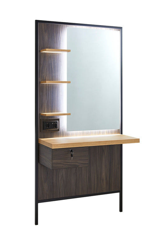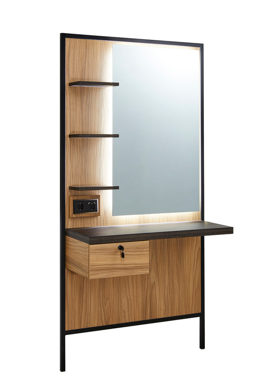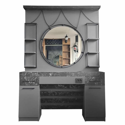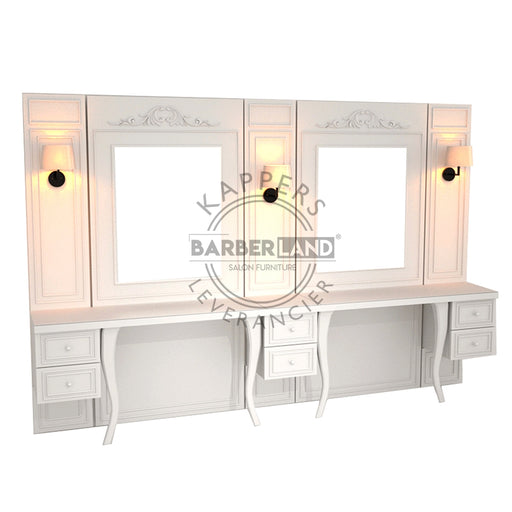 Compleet, elegant en stijlvol. Het aantrekkelijke ontwerp maakt het het meest authentieke kappersstation. Gemaakt van MDF. Met meerdere lades en pl...