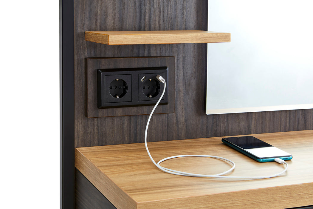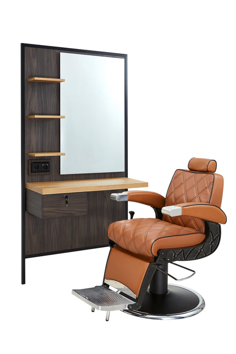 Daarnaast is de kaptafel voorzien van LED-verlichting rondom de achterkant van de spiegel. Deze zorgt voor een subtiel en gelijkmatig licht, wat perfect is voor een optimale werkomgeving. Het licht zorgt ervoor dat jij en je klanten altijd goed zicht hebben, zonder dat het te fel is. Dankzij de geïntegreerde USB-aansluitingen en Europese stopcontacten kun je gemakkelijk je apparatuur aansluiten, wat de dagelijkse werkzaamheden in de salon efficiënter maakt.