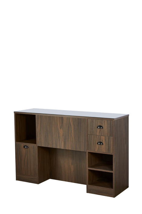 Zeer scherp geprijsde kaptafel voor uw zaak. Elegant, stijlvol en compleet. Het aantrekkelijke ontwerp maakt het het meest authentieke kappersstation. Gemaakt van gelakt hout. Met meerdere lades en planken zodat u al uw producten kunt opbergen en tegelijkertijd kunt presenteren.