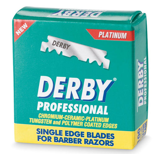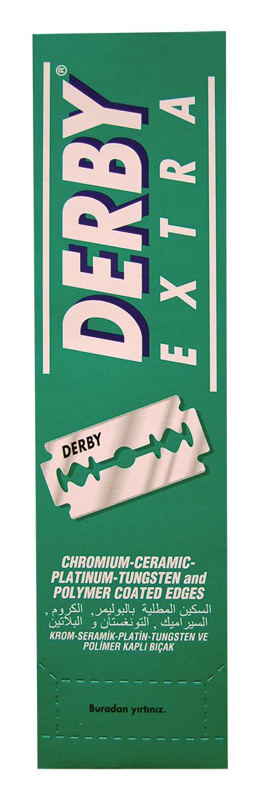 Derby premium single edge blades. Premium kwaliteit mesjes van Derby. In karton zitten 100 stuks.