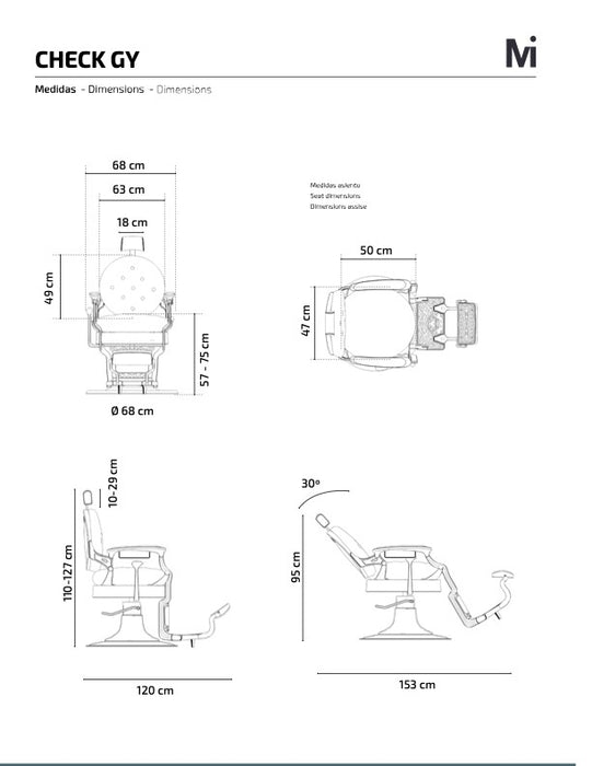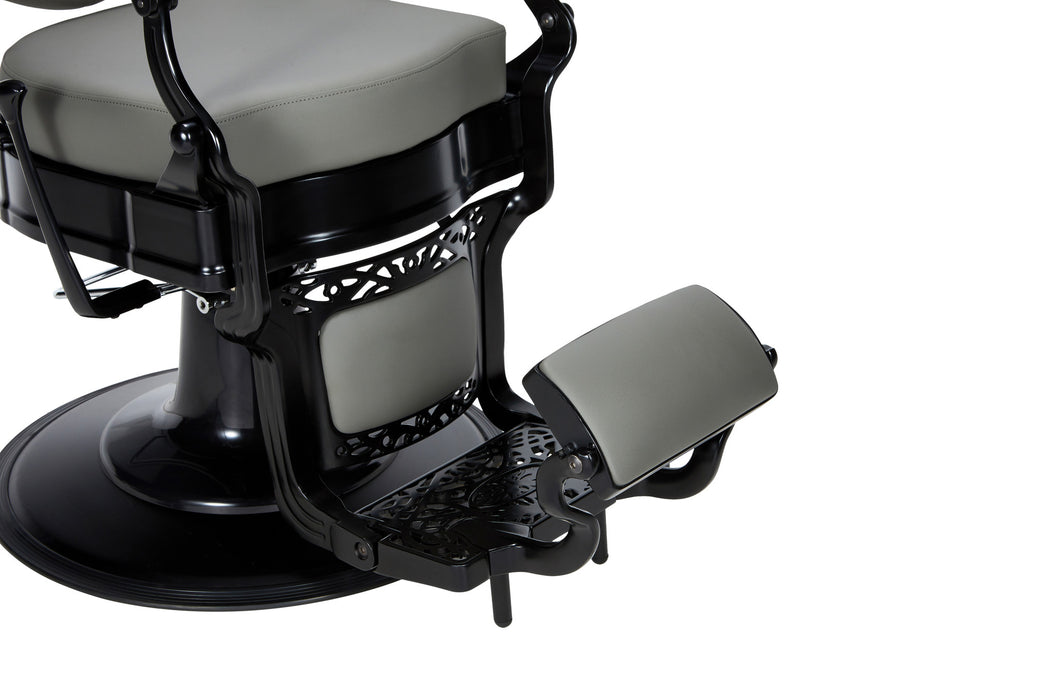Een vernieuwd iconisch ontwerp met hoogwaardige materialen en ontwerpdetails die het onweerstaanbaar maken. De barberchair Check GY is voorzien van een duurzaam kunstleer voor een lange levensduur. De binnenstuctuur van de zitting en rugleuning zijn gemaakt van hout bedekt met schuim met hoge dichtheid voor optimaal comfort. De stoel is gegoten van een aluminium structuur met een omkeerbare en kantelbare aluminium voetsteun. Verder voor een aangenaam comfort voor u en de klant is deze stoel voorzien van een in hoogte verstelbare en afneembare hoofdsteun. Met de hydraulische pomp met verstelbare rem kunt je voor een ideale werkhoogte de stoel in hoogte verstellen. Deze barberchair met een modern en comfortabel design, die de aandacht trekt vanaf de eerste binnenkomst in je barbersalon.