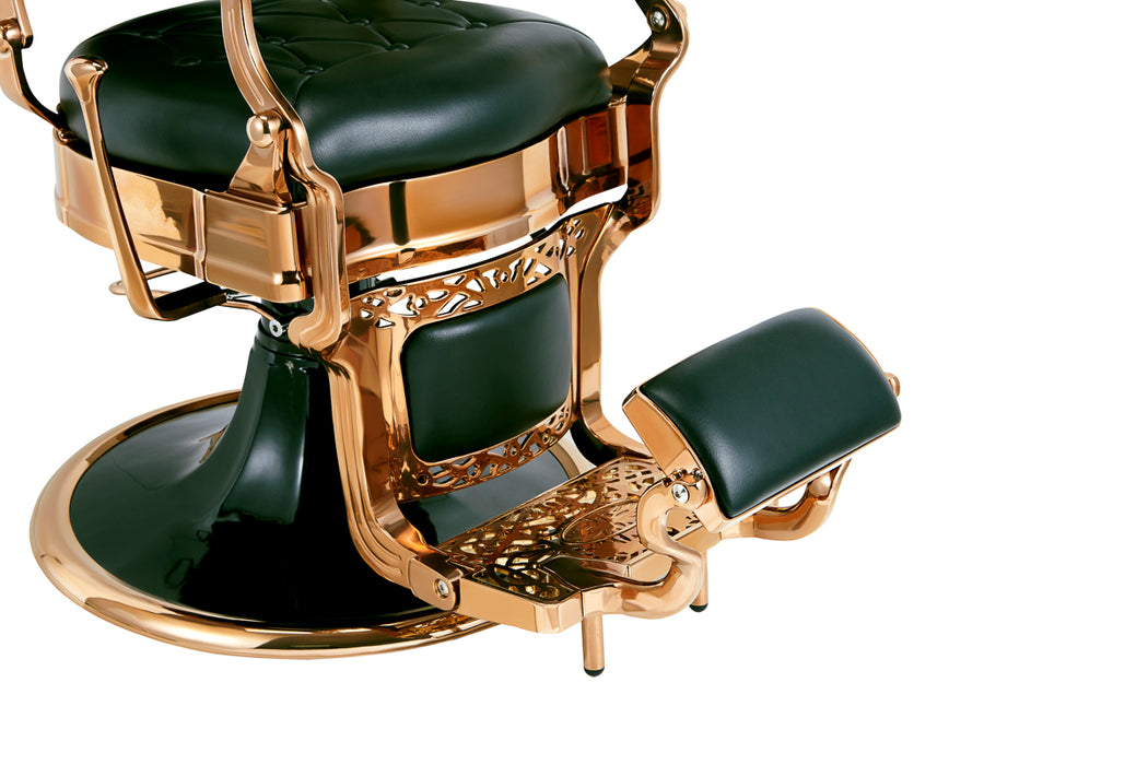Uitstekende kappersstoel. Kirk GRS is een ergonomische stoel. Robuust en veelzijdig. Met een duidelijk gemarkeerde vintage stijl. Het heeft ook metallic afwerkingen. Hoewel hij is gemaakt met de modernste materialen, is de stijl van de antieke kappersstoel Kirk onmiskenbaar. kortom, het zal elegantie en een unieke klassieke stijl brengen in elke kapperszaak.hoge kwaliteit brandvertragend PVC poly-leer.gegoten aluminium frame. Matte metallic afwerking. Zeer lichte stoel. Snel herstellend schuim met hoge dichtheid. Verchroomde metalen beschermring bevestigd aan het onderstel. Omkeerbare en kantelbare aluminium voetsteun. Verstelbare hoofdsteun. Handdoekhouder.