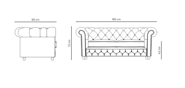 Afmetingen: 185cm lang x 72cm hoog x 90 cm breed