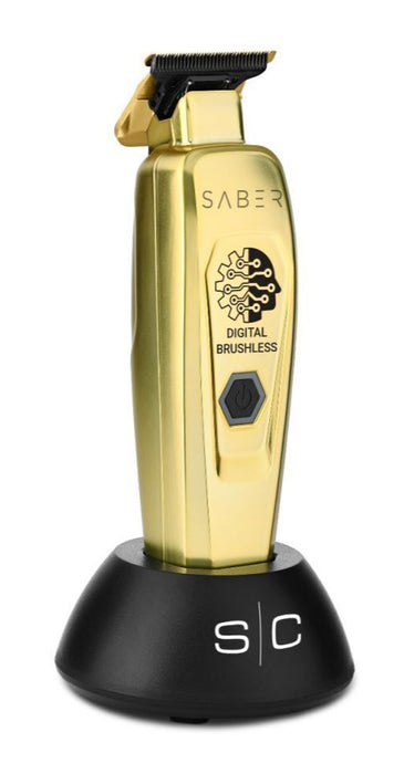 De Stylecraft Saber Trimmer is compact en lichtgewicht het heeft een slank en modern taps toelopend ontwerp met een volledig metalen, superduurzame body die slechts 210 gram weegt, wat ultiem comfort en behendigheid biedt Het is ontwikkeld en ontworpen in de VS. De set wordt geleverd inclusief trimmer, Gold Titanium X-Pro Wide Fixed Blade, Black Diamond Carbon Deep Slim blade, hulpmiddel voor het instellen van zero-gap, Micro-USB-kabel, oplaadstation en snoer, schoonmaak-/onderhoudskit en schroevendraaier.