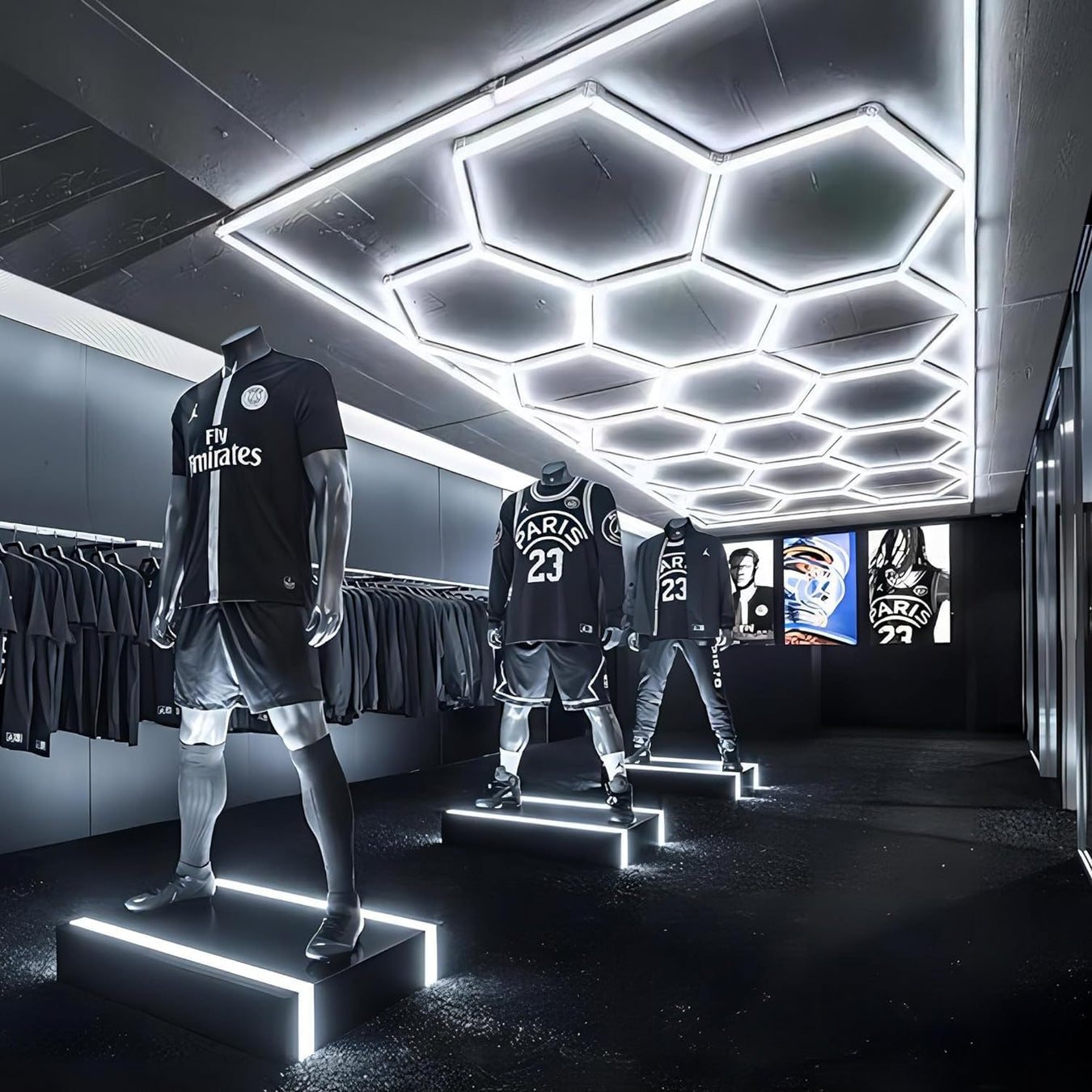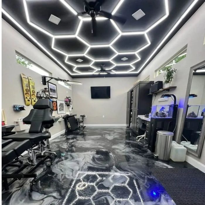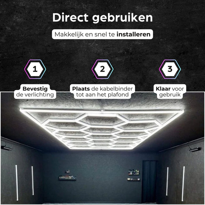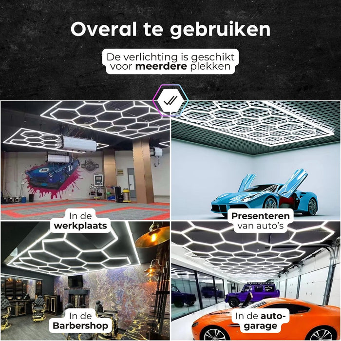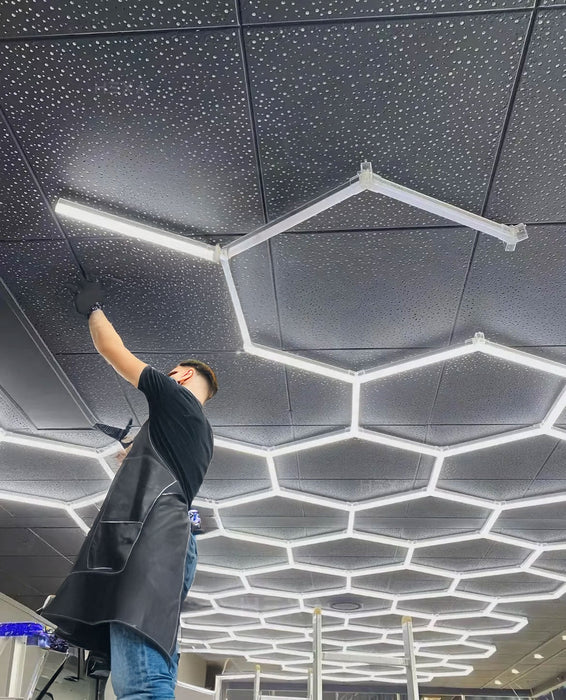 De Hexagon LED-verlichting biedt optimale helderheid en kleurweergave en is geschikt voor uiteenlopende toepassingen, zoals kapsalons, garages, en autowerkplaatsen. Dankzij de veelzijdige LED-technologie combineert dit systeem functionaliteit met een elegante uitstraling.