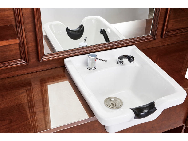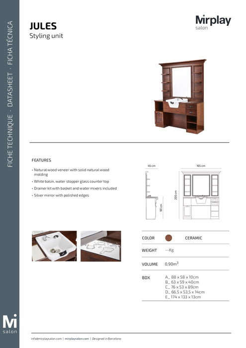 Compleet, Elegant en stijlvol. Het aantrekkelijke ontwerp maakt het het meest authentieke kappersstation. Gemaakt van gelakt hout. Met meerdere lades en planken zodat u al uw producten kunt opbergen en tegelijkertijd ook kunt presenteren. Bovendien bevat het een ceramisch bassin zodat het niets ontbreekt.