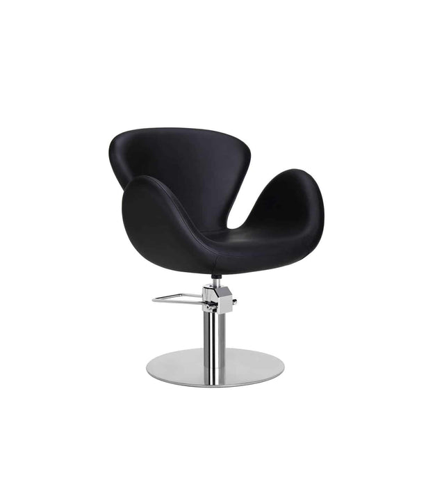 Prachtige en unieke ronde kappersstoel. Zeer comfortabel door de ronde vormen en zeker een blikvanger in de salon. De stoel is voorzien van hydraulische pomp en rem. De bekleding is van zwart PVC en is vuur afstotend. De draagkracht van de pomp is maar liefst 200 kilo.