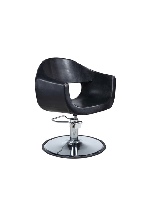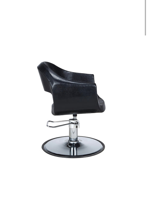 Prachtige, strakke en moderne kappersstoel. Leverbaar in de kleur zwart. De Cindy word geleverd op de ronde base, met hydraulische pomp en rem. De bekleding is van zwart PVC en is vuur afstotend. Dit is verplicht in overheids gebouwen zoals scholen, ziekenhuizen en zorg instellingen. De stoel is gemaakt met houten panelen, die zijn beplakt met Quick recovery, high-density foam. Hierover zijn ze bekleed met sterk zwart PVC. De draagkracht van de pomp is maar liefst 200 kilo.