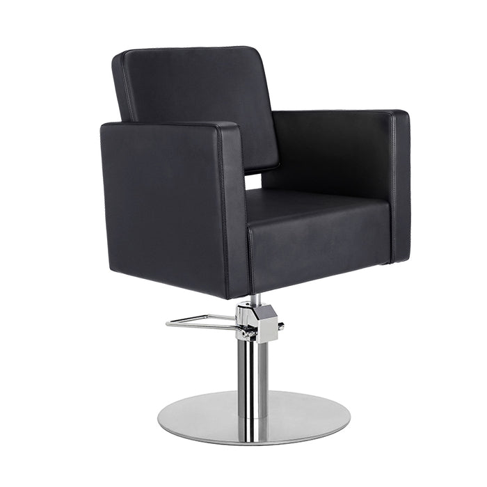 Prachtige, strakke en moderne kappersstoel. De Dora kapperstoel kan worden geleverd met diverse voeten. Het heeft een hydraulische pomp en rem. De bekleding is van zwart PVC en is vuur afstotend. Dit is verplicht in overheids gebouwen zoals scholen, ziekenhuizen en zorg instellingen. De stoel is gemaakt met houten panelen, die zijn beplakt met Quick recovery, high-density foam. Hierover zijn ze bekleed met sterk zwart PVC. De draagkracht van de pomp is maar liefst 200 kilo.