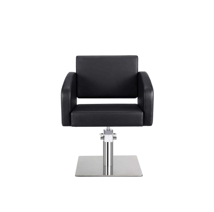 Prachtige, comfortabele stoel met een moderne design. De stoel is voorzien van hydraulische pomp en rem. De bekleding is van zwart PVC en is vuur afstotend. De stoel is gemaakt met houten panelen, die zijn beplakt met Quick recovery, high-density foam.