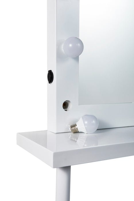 Door het unieke design is de Remi kaptafel het perfecte meubelstuk voor elke visagie hoek. De 15 ledlampen zorgen voor de juiste belichting zodat jij en jouw klanten het uiteindelijke resultaat kan volgen. Met de 2 USB-poorten kunnen jouw klanten hun telefoons opladen bij lange behandelingen.