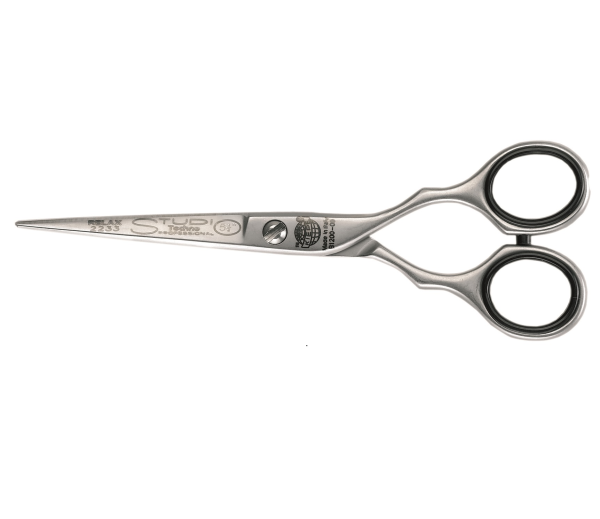 Kappersschaar gesmeed van mat RVS, met buffer, micro, rubber ring en pinksteun. Voldoet aan de hoogste kwaliteitsnormen.