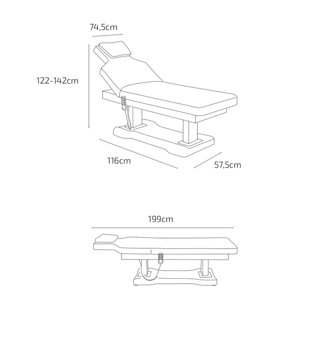 High-end beauty sofa met 3-delige matras uit één stuk, voorzien van 4 motoren voor hoogte, rugleuning, voetensteun en voetensteun kantelverstelling.