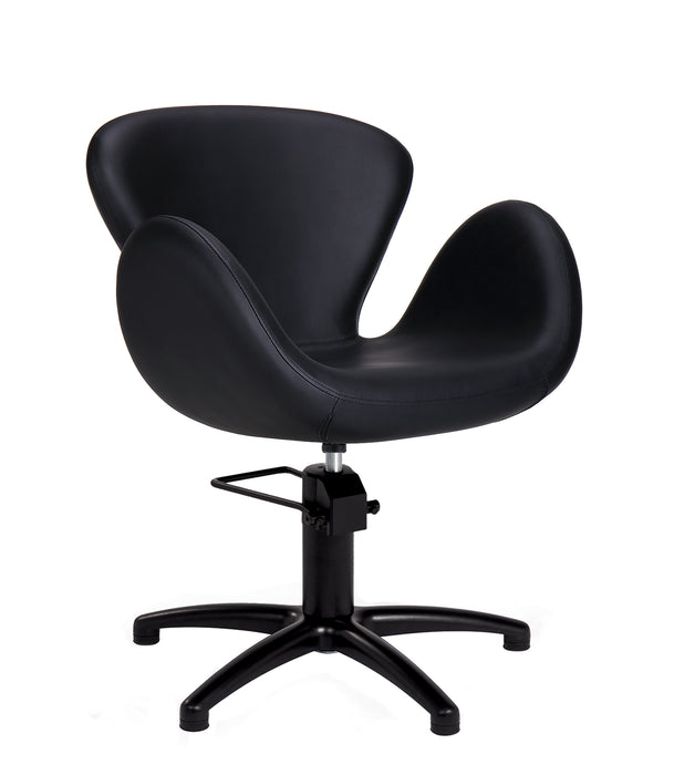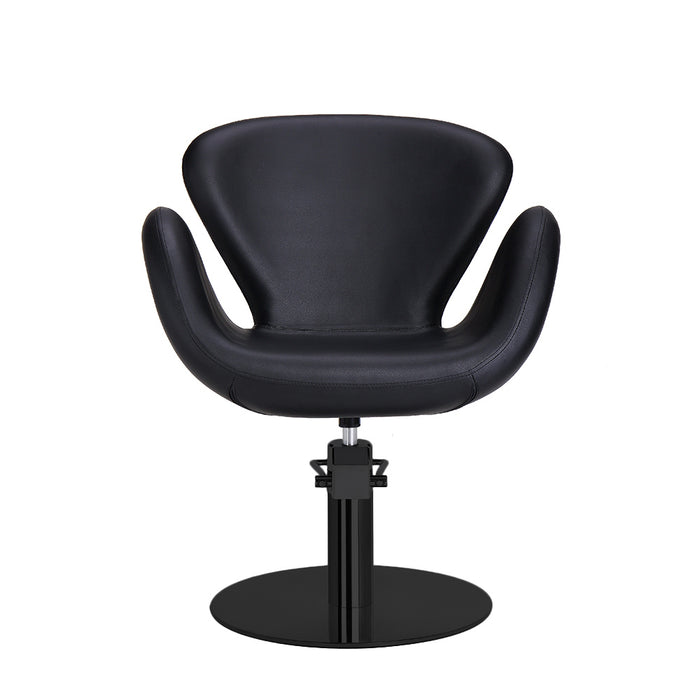 Prachtige en unieke ronde kappersstoel. Compleet in het zwart. Zeer comfortabel door de ronde vormen en zeker een blikvanger in de salon. De stoel is voorzien van hydraulische pomp en rem. De bekleding is van zwart PVC en is vuur afstotend. De draagkracht van de pomp is maar liefst 200 kilo.