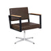 De Ocean kappersstoel met 5-ster zwart gecoate voet is geliefd bij kappers met een voorkeur voor minimalistisch design. Door zijn bruin lederen look van kwaliteit pvc vinyl gestoffeerde met goudkleurige biezen en armsteunen van eikenhout geven de kappersstoel Ocean zijn natuurlijke uitstraling. Door het gebruik kwaliteitsschuim biedt de Ocean kappersstoel een hoog zitcomfort.