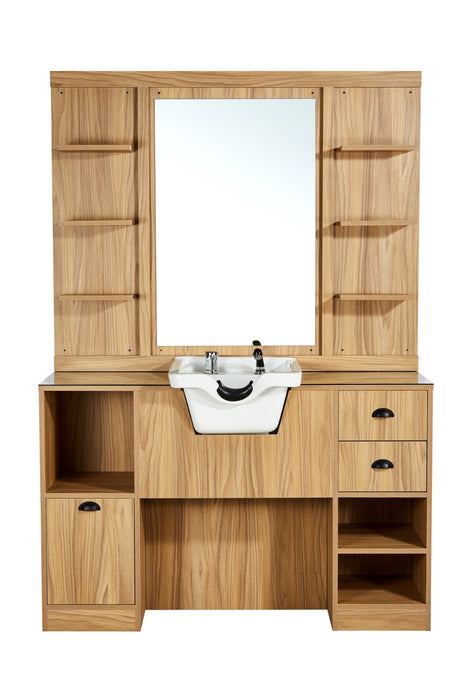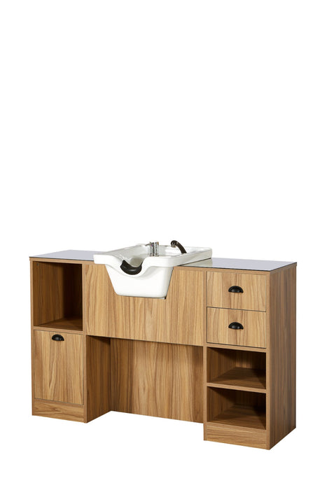 Elegant, stijlvol en compleet. Het aantrekkelijke ontwerp maakt het het meest authentieke kappersstation. Gemaakt van gelakt hout. Met meerdere lades en planken zodat u al uw producten kunt opbergen en tegelijkertijd kunt presenteren.