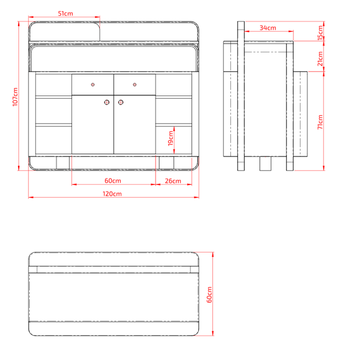 Afmetingen : 120cm breed x 107cm hoog x 60cm diep (zie foto)