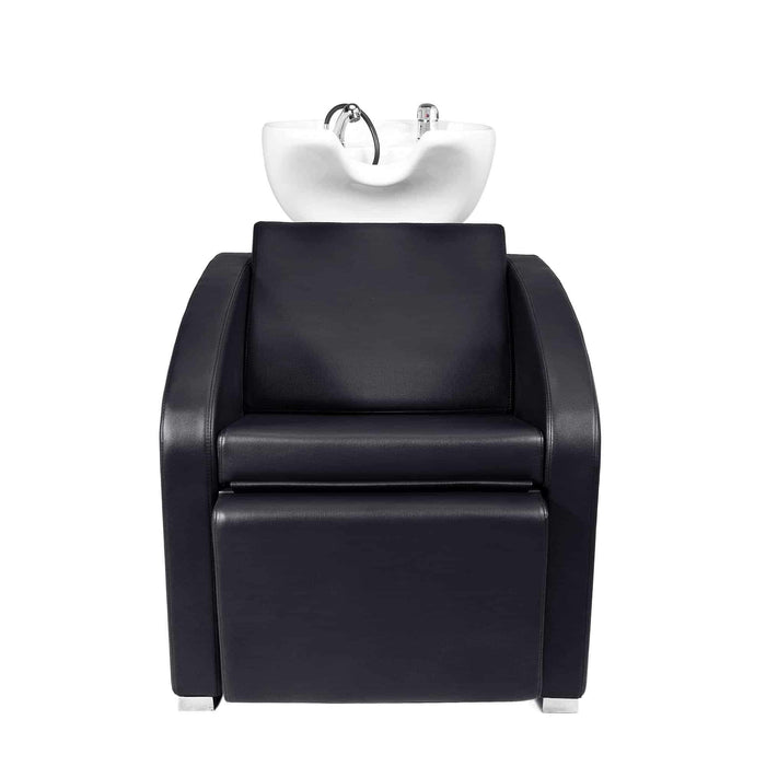 Deze professionele wasunit zit erg comfortabel en heeft een elektrisch uitklapbare voetensteun. Deze bediend de kapper aan de achterkant met een handige knop. Zitting gemaakt met houten binnenstructuur, bekleed met brandvertragend PVC-kunstleer en snel herstelschuim met hoge dichtheid. Wastafel en deksel van de wastafelsteun van roestvrij staal. Aqua stop kit: Mengkraan, anti-drup en flexibele douche. Levertijd: 5-6 werkdagen.