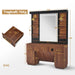 De kaptafel heeft 2 lades en 2 kasten, waardoor u voldoende ruimte heeft om uw verschillende werkgerei netjes op te bergen. Daarnaast zorgen 4 open planken naast de spiegel voor snelle toegang tot veelgebruikte producten.