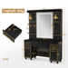 De kaptafel heeft 2 lades en 2 kasten, waardoor u voldoende ruimte heeft om uw verschillende werkgerei netjes op te bergen. Daarnaast zorgen 4 open planken naast de spiegel voor snelle toegang tot veelgebruikte producten.