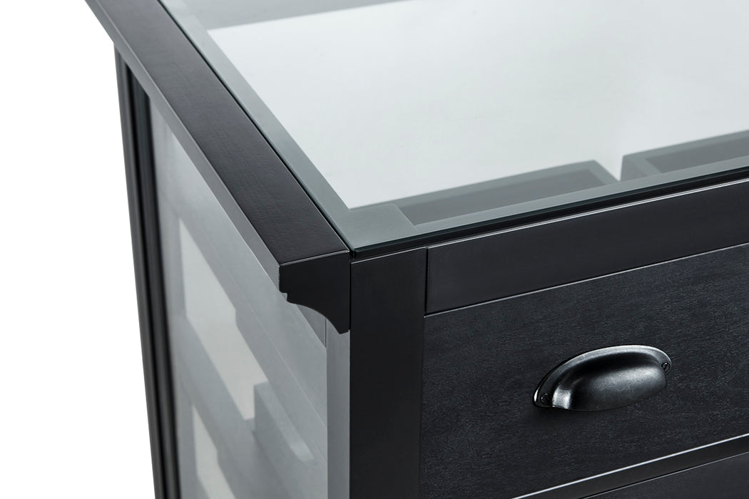 De receptie balie Reno is geïnspireerd op het ouderwetse vintage kappersdecor. Met prachtige glazen panelen en een hoogwaardige houten structuur. De unit heeft veel handige opbergvakken, met premium handvatten.
