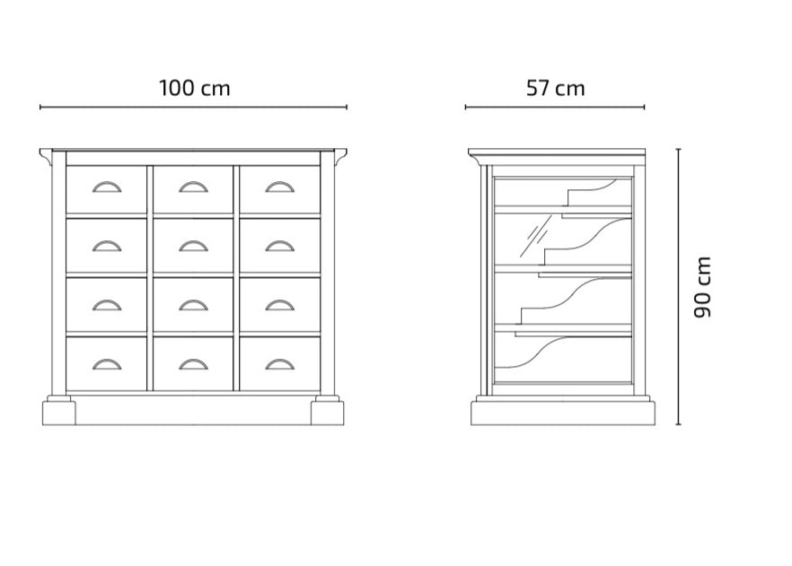 Afmetingen : 100cm breed x 90cm hoog x 57cm diep (zie foto)