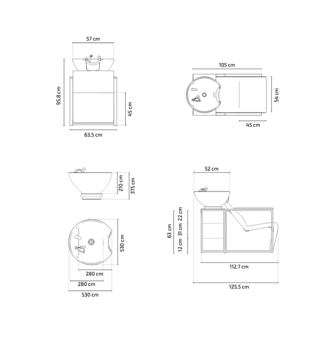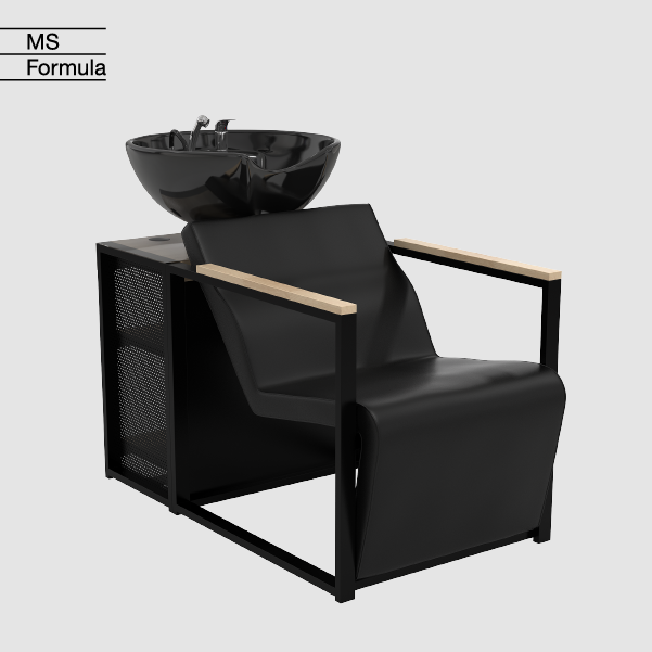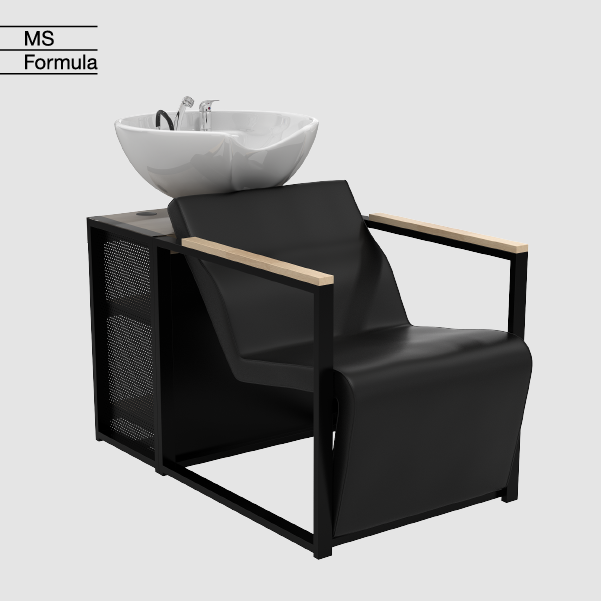 De wasunit Basil is een stijlvolle wasbak met vaste stoel uit de Organic Collection. Met zijn eenvoudige design is het de perfecte wasunit voor de salon met een natural design. Het gebruik van zwart gecoate metalen frame, de stoffering in PVC vinyl in een zwart lederlook en de massief eikenhout accenten is de wasunit Basil een eye-catcher voor de moderne salon. De wit of zwart keramische wasbak met mengkraan en uitneembare douchekop maken de wasunit af.
