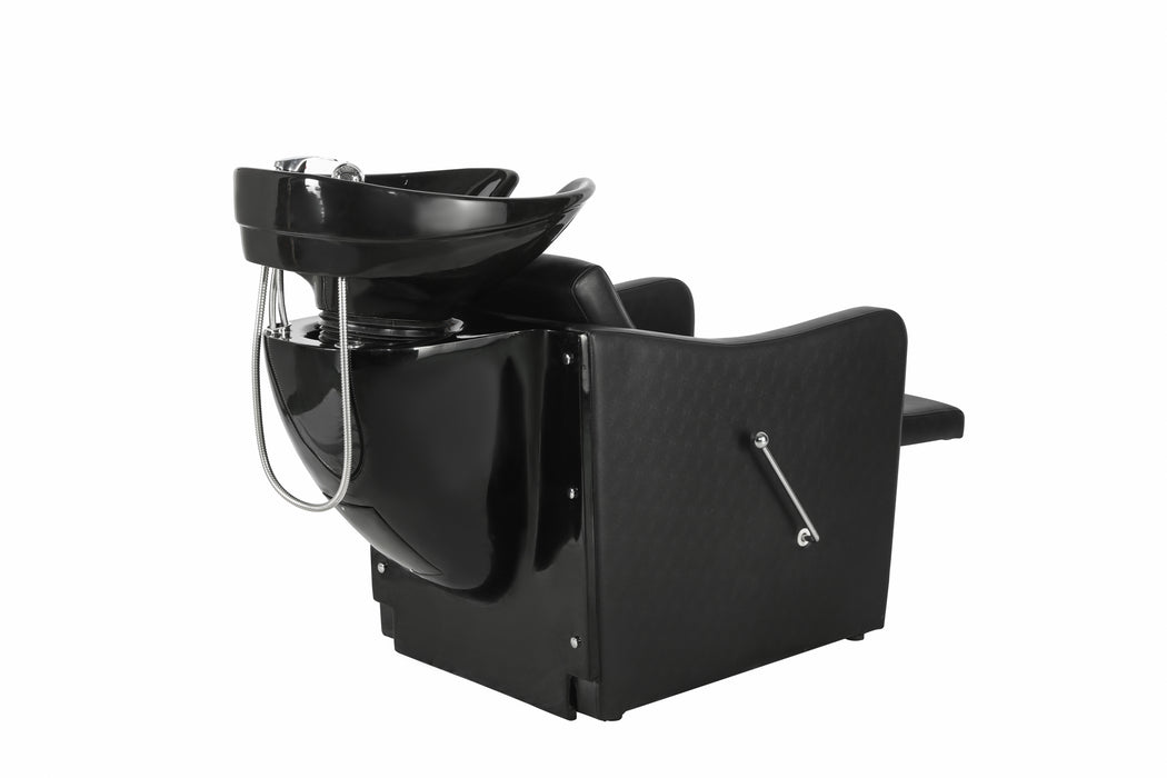 Professionele ergonomische wasunit van hoge kwaliteit. Jordan heeft een handmatig ligsysteem. Het heeft brandvertragende synthetische PVC lederen zwarte bekleding. Het heeft een schuim met hoge dichtheid. Jordan heeft een opklapbare voetensteun met een handmatige hendel. Verkrijgbaar met zwart of wit keramiek aan de bovenzijde.