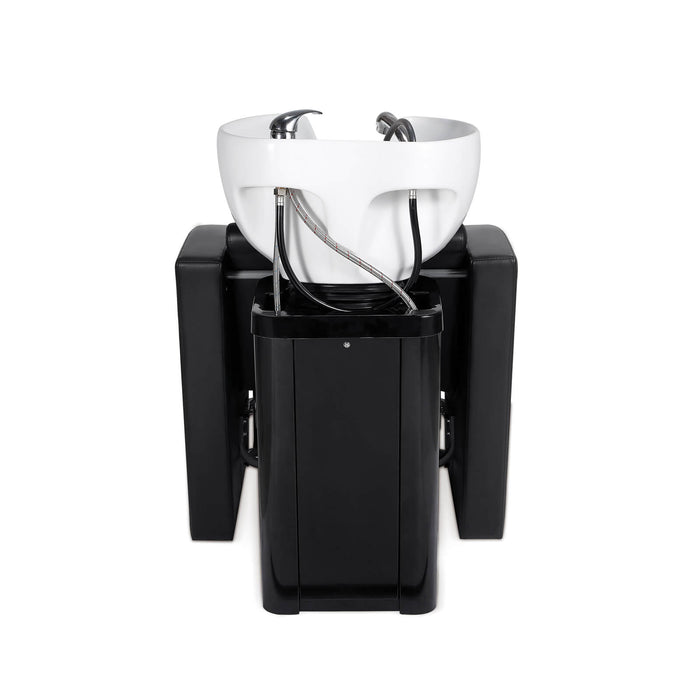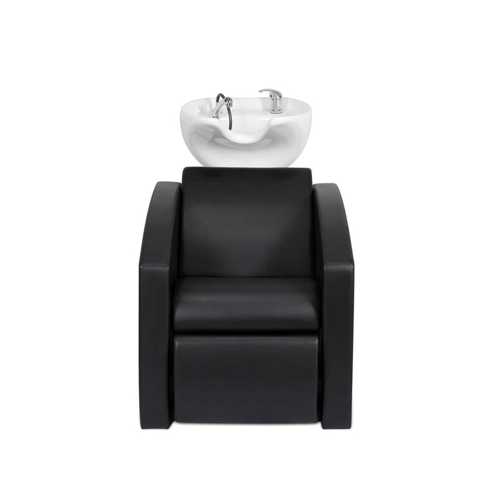 De wasunit Peter is een professionele wasbak met een comfortabele geïntegreerde sofastoel met aflopende armleuningen. Het compacte formaat van de wasunit Peter versterkt zijn elegante ontwerp. De robuuste frame van de wasunit Peter is gemaakt van hoogwaardig metaal en de wasbak vervaardigd in keramiek voorzien van een kantelmechanisme. De wasbak voorzien van een mengkraan en een uitneembare kraan.